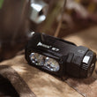 Ultracompacto e leve: o farol E7 apresenta dimensões elegantes de 2,38 x 0,94 x 1,10 polegadas e um peso-pena de 80g.